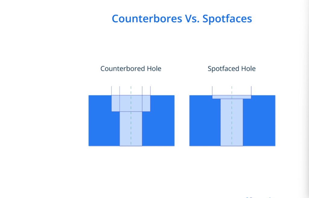 Ein Spotface ist im Grunde eine flache Senkung. Es wird verwendet, um eine glatte, ebene Fläche auf einer rauen oder unebenen Oberfläche bereitzustellen, damit der Schrauben- oder Bolzenkopf senkrecht sitzt. Es ist üblich beim Bearbeiten von Stahl oder Gussstücken, bei denen die Oberflächenbeschaffenheit variiert.